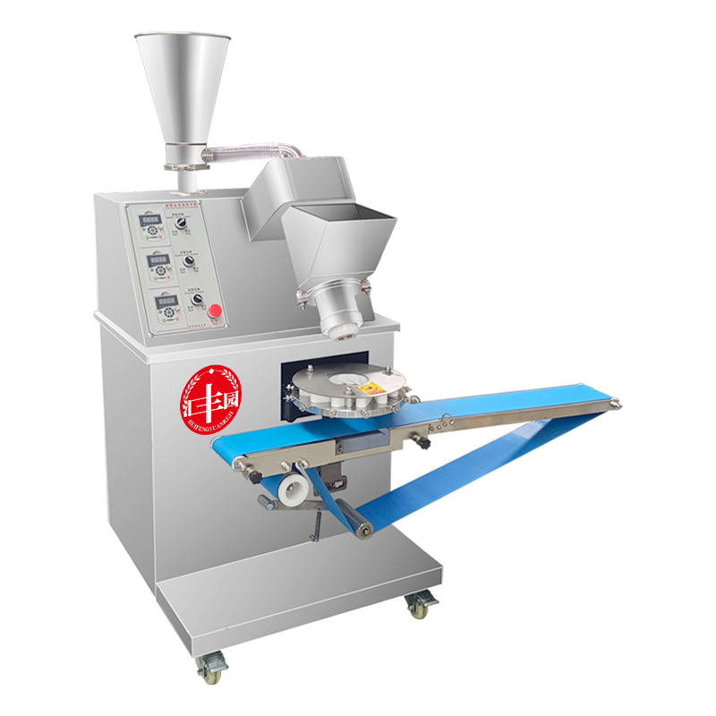 多功能包子機采用螺旋式推面方式,由模具控制面皮的厚薄。面斗中的面由供面調系統,將面送至機頭出口處,形成含餡的面柱后由成型盤內的成型塊將面柱擠斷成大小均勻的包子。全機的工作部分主要由:送面系統、送餡系統、機頭、成型盤、輸送帶五部分組成。工作流程:供餡料斗-〉供面斗)-〉加餡加面-〉切斷成型-〉傳送帶-〉醒發-〉蒸制;優勢:采用雙絞龍,螺旋揉面推進出面,大螺徑,緩慢勻速出面,面皮受力小,供面速度可調。餡管采用半臥式或立式餡斗裝置,立式有利于改大顆粒餡料的流通,在制作較稀餡料時可采用半臥式餡斗下均勻。 可加配值可生產:餡餅和方型饅頭、圓饅頭等。成型盤采用軸承傳送,配合刀塊張合防止以前包子機做大包子成型堵面現象。有9褶或12褶和16褶花型供用戶選擇,進口高分子材料刀塊利用科學原理均衡受力減小,解決了其它包子機成型刀塊靠一塊主刀推動其它副刀運動易磨損,刀夾面粘面,易受天氣變化而熱脹冷縮不能正常生產的難題,促進機器穩定延長使用壽命。免費培訓包子制作技術、及速凍生胚技術;