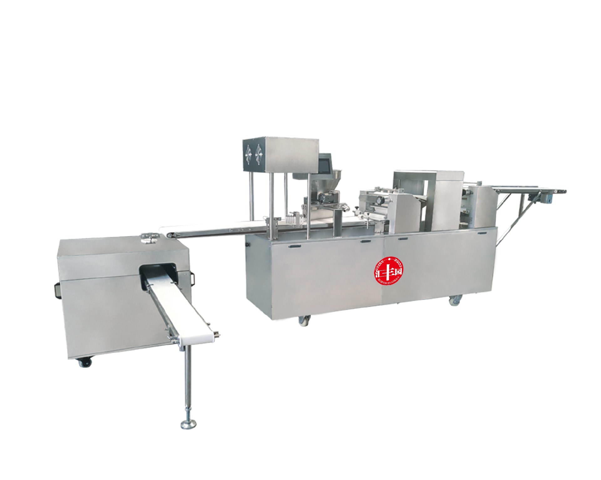 仿手工包子機采用仿手工搟面的方式將面皮壓成合適厚度。再由出餡部分將餡料填充至面皮上,經由卷面部分卷成圓柱形狀,傳送至成型部分成型,過程中不會破壞面皮筋性,保持手工原味。全機的工作部分主要由:送面系統、壓面系統、送餡系統、卷面系統、成型等五部分組成。工作流程:供餡料斗-〉供面斗)-〉包制-〉切斷成型-〉傳送帶-〉醒發-〉蒸制;優勢:自帶壓面系統,采用壓面輥漸進仿手工搟面方式將面皮壓成合適厚度,整個過程不會破壞面皮筋性。面皮柔軟筋道。 可加配值可生產:餡餅和方型饅頭、圓饅頭等。成型盤采用軸承傳送,配合刀塊張合防止以前包子機做大包子成型堵面現象。有9褶或12褶和16褶花型供用戶選擇,進口高分子材料刀塊利用科學原理均衡受力減小,解決了其它包子機成型刀塊靠一塊主刀推動其它副刀運動易磨損,刀夾面粘面,易受天氣變化而熱脹冷縮不能正常生產的難題,促進機器穩定延長使用壽命。