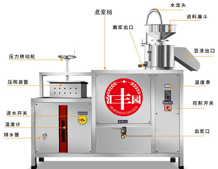 我公司生產即食豆漿、豆腐機在國內是較早的企業,多年來通過對設備的不斷改進,利用現代科技與傳統工藝的完美結合。使設備外觀設計美觀、時尚,操作簡單,主要有磨漿機、煮漿桶、蒸氣機、成型機等組成。機器采用不銹鋼制造,干凈衛生,技術領先,質量可靠,經久耐用。實現了生產過程自動化,具有高效、省時、耗能低、占地小、無污染等優點。而且采用先進磨漿技術,瞬間加熱工藝,保證了蛋白質不受破壞,從而使生產出來的豆制品營養更豐富,味道更鮮美。工藝流程: 將浸泡好的黃豆由高速分離磨漿機加工,排出豆渣,產出的豆漿經過蒸汽加熱達到去腥,并煮漿均質,并添加輔助原料消泡、凝固劑(如鹵水、石膏、內脂、酸漿等)、成型和深加工處理便可產生出營養豐富的豆制品如:豆漿、豆腐腦、豆腐、豆桿、豆皮、素雞、豆泡等制品,適用于賓館、超市、飯店、學校、企業食堂、工程店及食品廠等。