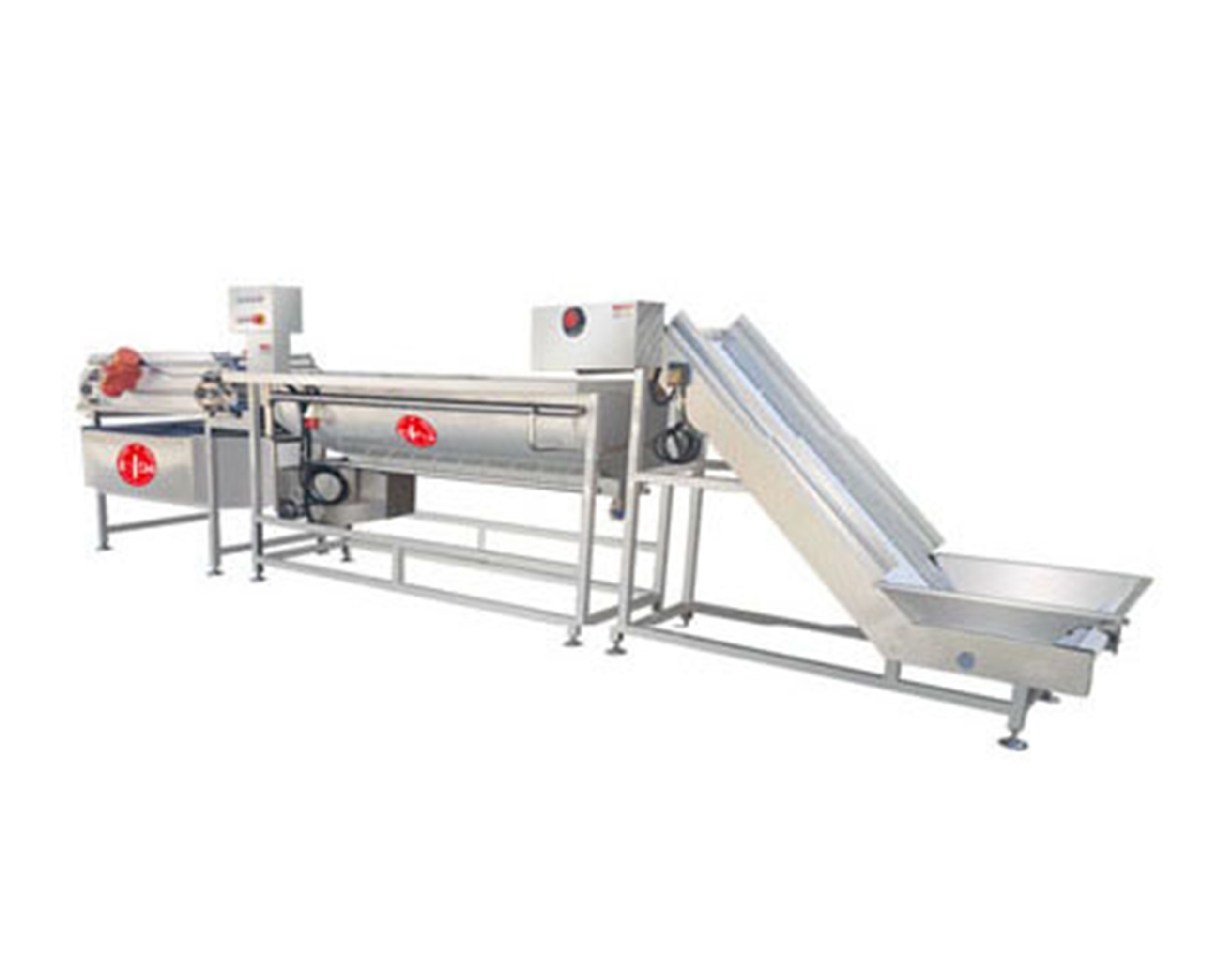 有提升機和氣泡清洗機和震動輸送機構(gòu)這三部分組成,提升機入便入料,氣泡清洗機采用高壓氣體產(chǎn)生鼓泡,循環(huán)水泵沖浪和提升高壓 噴水三重清洗。輸送帶無極可調(diào)、臭氧殺毒等功能以及全機身密封包邊處理。美觀大方,做工精良。是目前市面上先進的洗菜設(shè)備。有 效分離蔬菜上面粘連的泥沙,雜質(zhì)。清洗過程噴淋和高壓噴嘴持續(xù)供水,供水量可調(diào),方便客戶根據(jù)蔬菜處理量及清潔程度進行靈活調(diào) 節(jié)。采用振動式輸送替代傳統(tǒng)輸送帶式輸送,結(jié)構(gòu)更簡單,比傳統(tǒng)輸送帶減少清洗時間使用更方便。采用進口減震臂,保證在持續(xù)穩(wěn)定 的低頻震動輸送過程中,有效瀝除多余水分,并為下一道脫水工序提供預(yù)脫水功能。 | |