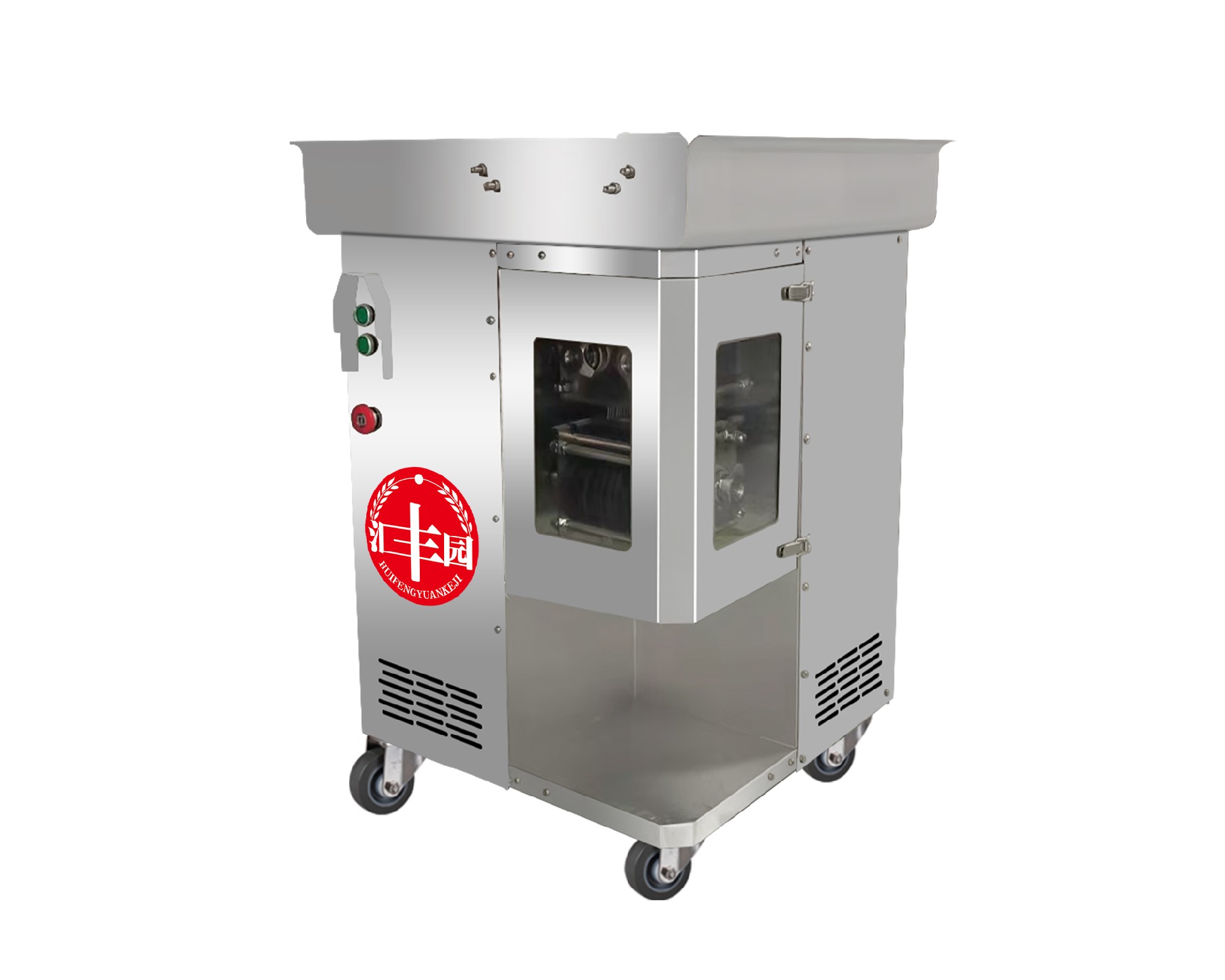 整部機體采用優質不銹鋼制作,高強度籠式機身緊湊結構,表面拋光拉絲處理采用優化衛生設計,方便清洗,可水槍沖洗,機器刀片為不銹鋼材料,特殊淬火工藝鋒利耐用,兩個獨立刀組,可自由拆卸,切面光滑新鮮使其肉制品薄厚均,高品質始終如一,設備帶有萬向剎車腳輪方便移動,實現對無骨肉類及類似榨菜富有彈性的食物切成絲. 切片 切丁,適用于大中小規模的餐飲或肉類加工企業;