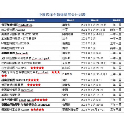 7、塑料橡膠機械注塑機、吹膜機、吹瓶機、模具、塑料包裝設備、制袋機、中空成型機、吸塑機、紙漿模塑設備、壓出機、壓延機、塑料石化加工機械、塑料容器、塑料管材、塑料家具、塑料家用品、塑料健身用品、塑料行業咨詢及服務等。