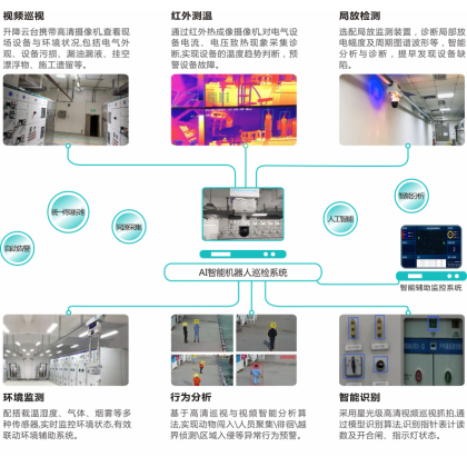 AI 軌道巡檢機器人可通過智能視覺識別和視頻功能,對水泥廠內升壓站設備(如變壓器、開關柜、配電柜等)的狀態進行實時監測;通過紅外熱成像模塊對設備溫度進行檢測,及時發現異常情況;音頻識別模塊可實時監測設備運行聲音,提前發現潛在故障。