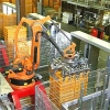 Kamps 公司決定采用三臺(tái)庫(kù)卡機(jī)器人 KR 180 PA 的自動(dòng)化解決方案。通過輸送帶及輥道向機(jī)器人輸送焙制食品。每四個(gè)裝滿同樣產(chǎn)品的貨盤停在分組臺(tái)上,而分組也正是機(jī)器人的抓取位置。相應(yīng)的 KR 180 PA 首先用夾持器的校準(zhǔn)十字叉放入四個(gè)容器之中,然后才將它們推到一起。如果該容器為塑料箱,則機(jī)器人會(huì)用夾持器夾塊將其卡緊。而對(duì)于不能承受太大壓力的紙箱,機(jī)器人會(huì)用從終端效應(yīng)器中伸出的鉤子抓住紙箱的外邊沿。KR 180 PA 可將產(chǎn)品堆垛到近兩米的高度,并分門別類的放置在歐洲標(biāo)準(zhǔn)貨盤上,然后輕輕的搖動(dòng)產(chǎn)品直至其達(dá)到一種穩(wěn)定的狀態(tài)。機(jī)器人甚至可以將已在生產(chǎn)中使用過幾百次的容器都精確的重疊堆垛起來(lái)。在集成的圖文顯示系統(tǒng)的幫助下,可以自動(dòng)進(jìn)行產(chǎn)品更換,因?yàn)闉榇怂璧乃袛?shù)據(jù)都可以從產(chǎn)品標(biāo)簽的代碼中讀取。